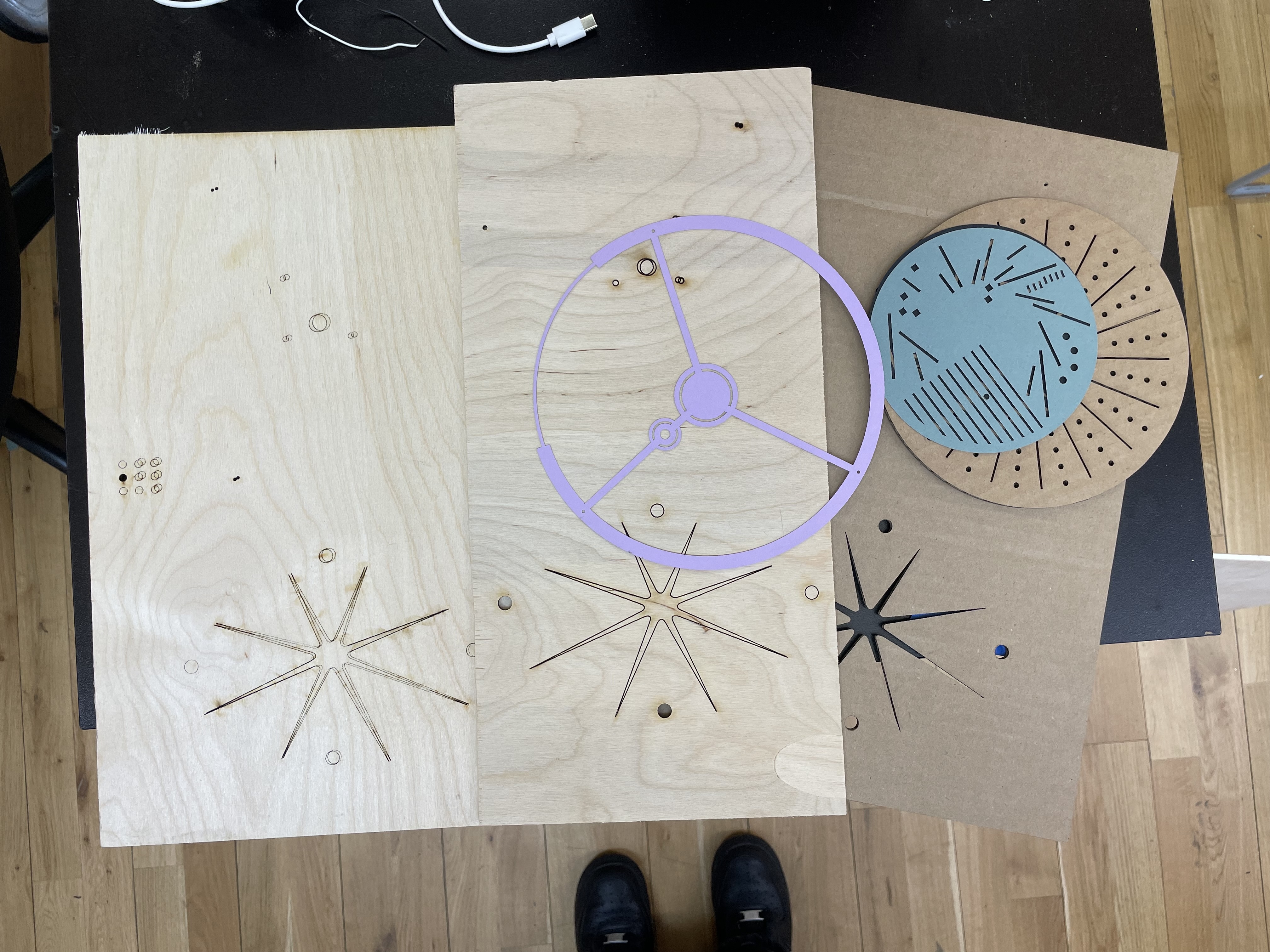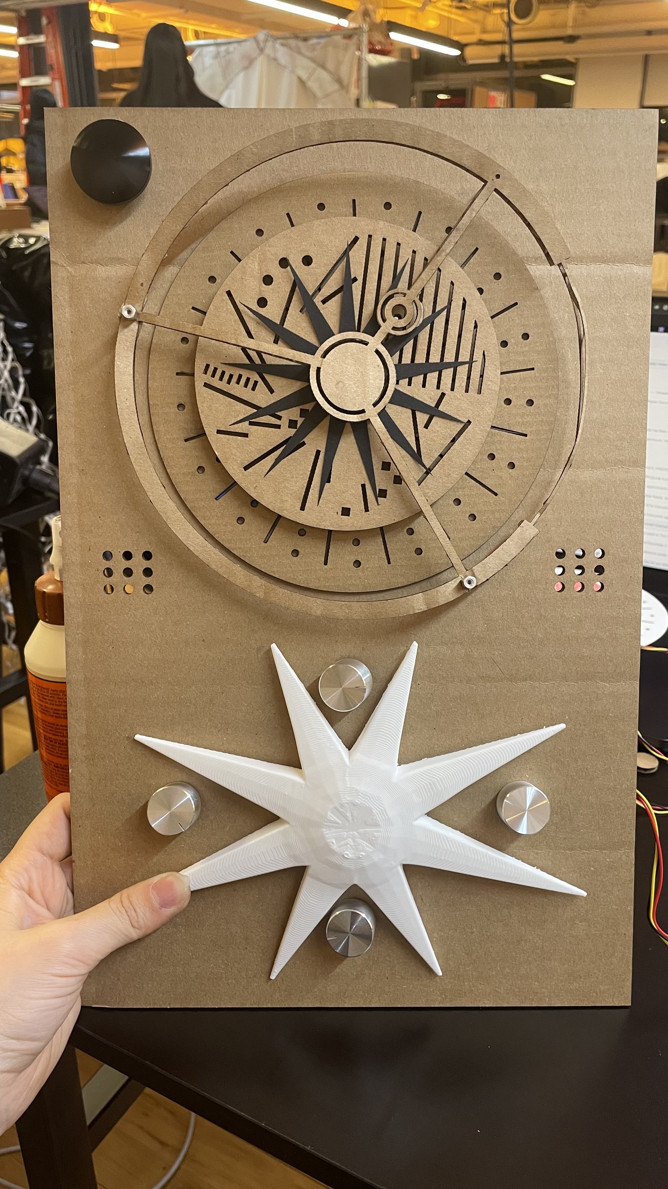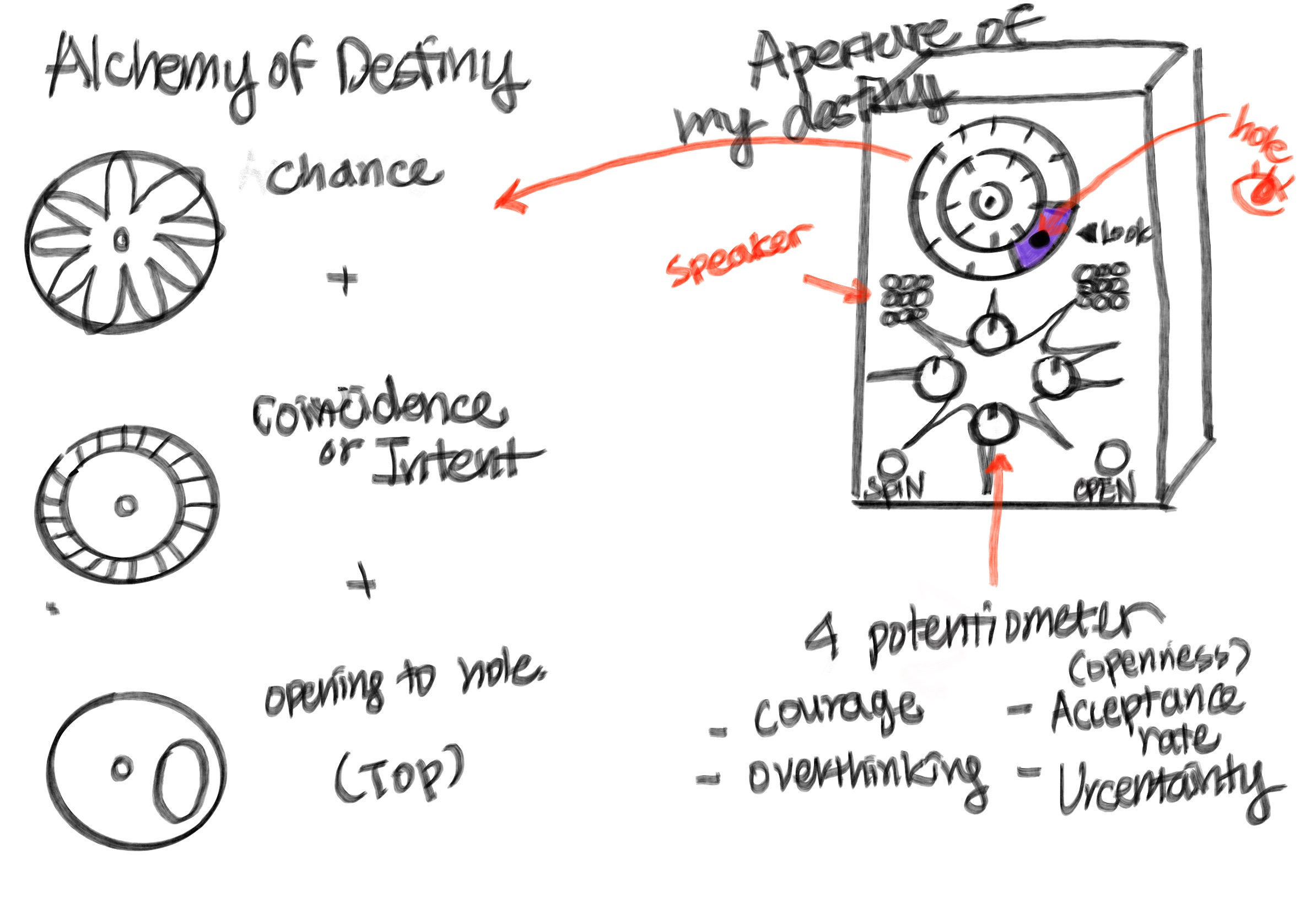 "Alchemy of Destiny" is an interactive installation that asks participants to explore their relationship to prediction and uncertainty. The work uses a stepper motor, potentiometers, and a layered disc mechanism to turn fortune telling into a mechanical ritual. Participants press a button to spin the discs, then adjust knobs to express their current emotional or psychological state. These inputs generate a fortune, which is revealed through a small OLED screen only when the apertures realign. The project emphasizes the ambiguity of destiny and the desire to glimpse the future, even when it remains unclear. By hiding and revealing messages through unstable mechanical alignments, the installation invites playful interaction while reflecting on the strange mix of curiosity, belief, and skepticism that shapes how we search for meaning.