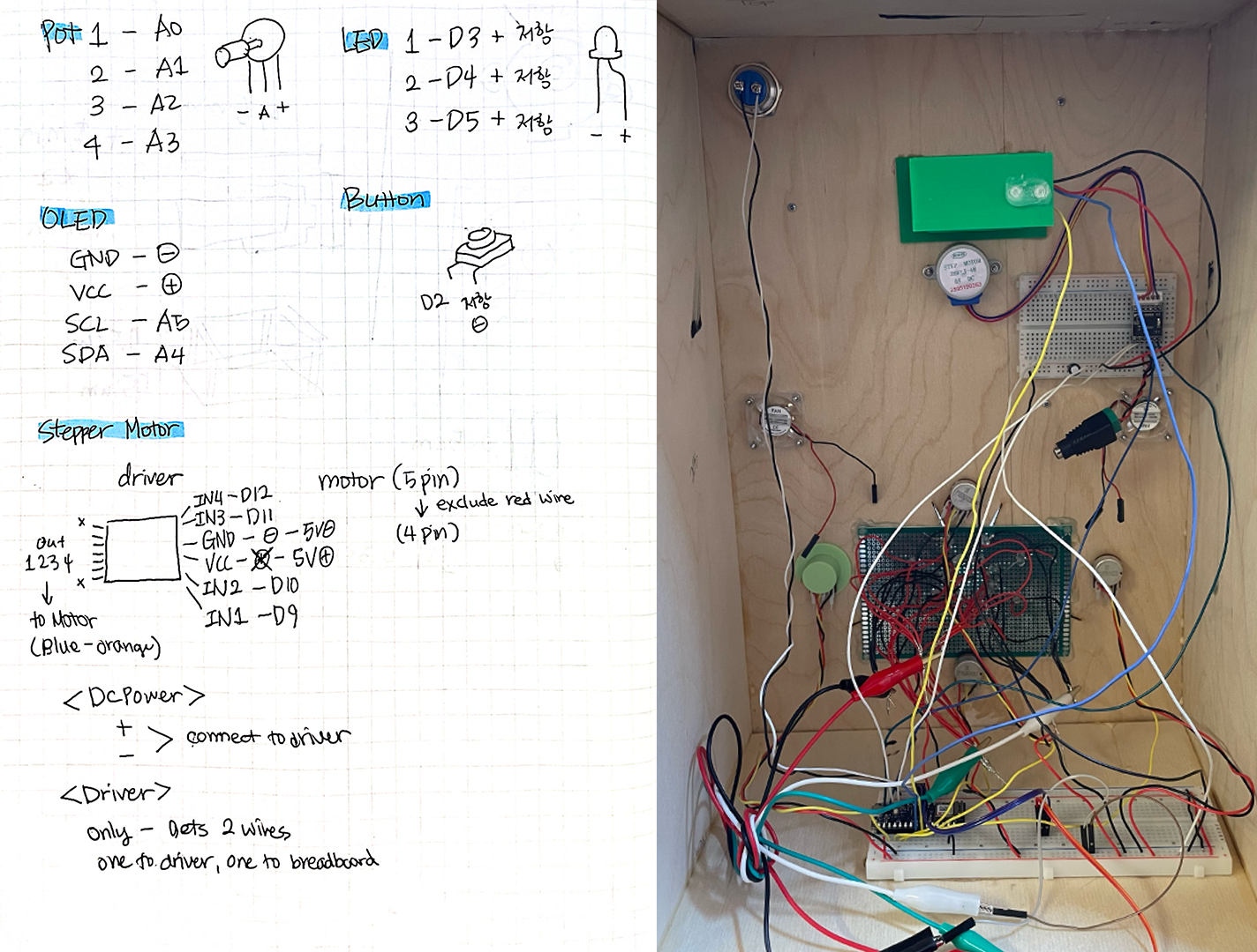 The four potentiometers in the installation reference the structure of saju (Korean Four Pillars of Destiny), which is traditionally composed of four elements representing the year, month, day, and time of birth. Rather than translating these elements literally, the knobs symbolically invite participants to consider multiple layers of their current emotional and psychological state, mimicking the way saju frames destiny through interconnected variables.